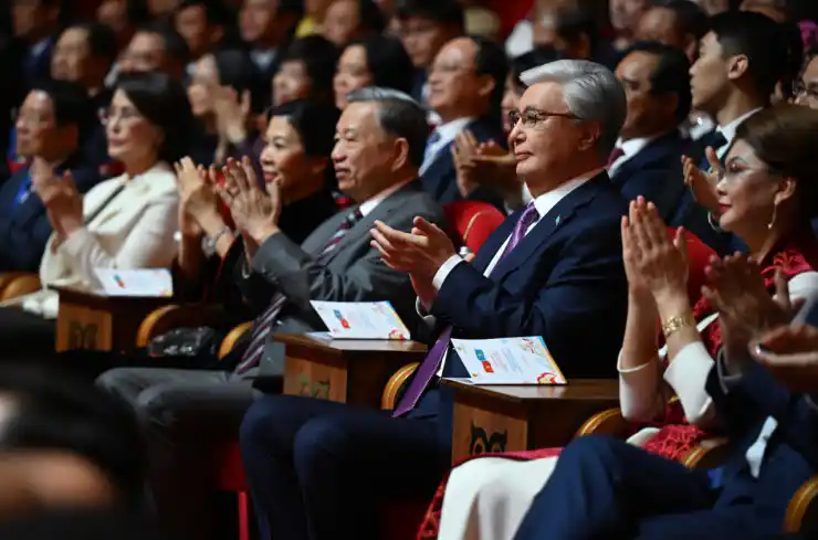 Президент Казахстана Касым-Жомарт Токаев и генеральный секретарь Центрального комитета Коммунистической партии Вьетнама То Лам посетили концерт в Астане.