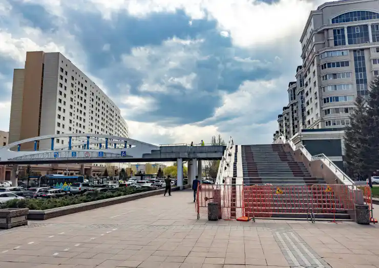 В Астане частично закрыли участок правительственного квартала: в частности, один из пешеходных мостов и пространство возле Дома правительства.
