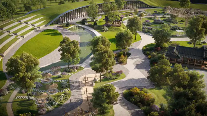Площадь парка составит 10 гектаров — это пятая часть от общей площади всех парков Алматинской области. Он станет сердцем Golden District — района образования, здравоохранения, культуры и креативных индустрий. Здесь создадут мемориал благодарности казахскому народу, сад идентичности, арт-объект "Дерево жизни", библиотеку, интерактивный музей и зоны исторической реконструкции.