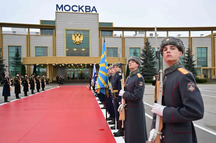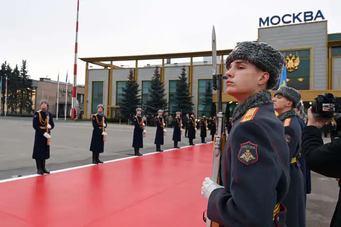 В честь высокого гостя была организована церемония, в ходе которой были исполнены национальные гимны Казахстана и России. Также в аэропорту присутствовали рота почетного караула Московского гарнизона и военный духовой оркестр.