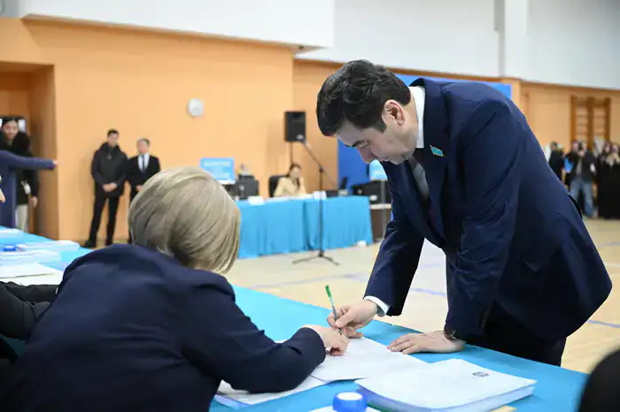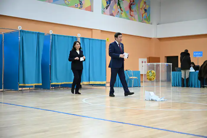 Председатель Мажилиса Парламента Ерлан Кошанов также принял участие в голосовании. Он проголосовал на участке № 128, который расположен в здании Национальной компании "Қазақстан темір жолы", и пришел на голосование вместе с супругой.
