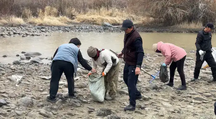 - Шымкент: около 100 человек очистили прибрежную территорию реки Қошқар ата.